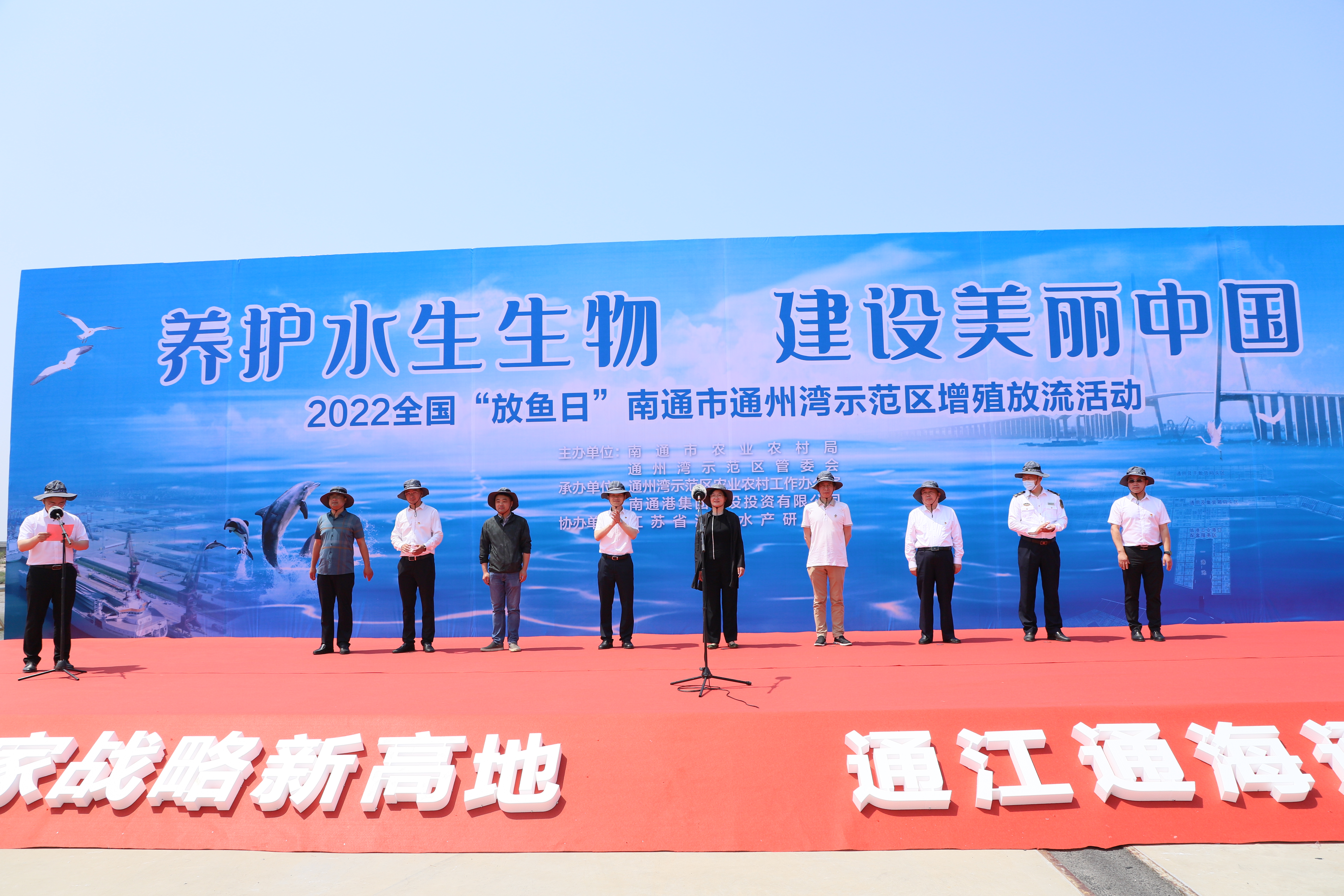 6月6日,由南通港集團建設投資有限公司承辦的2022全國“放魚日”南通市通州灣示范區增殖放流活動,在通州灣海事碼頭成功舉行。集團副總經理朱一林,建設公司黨總支書記、董事長姜金勇、黨總支副書記、總經理顧焱華出席活動。主辦方南通市農業農村局與通州灣示范區管委會、聯辦方通州灣示范區農業農村工作辦公室、協辦方江蘇省海洋水產研究所等單位相關領導共同參與。