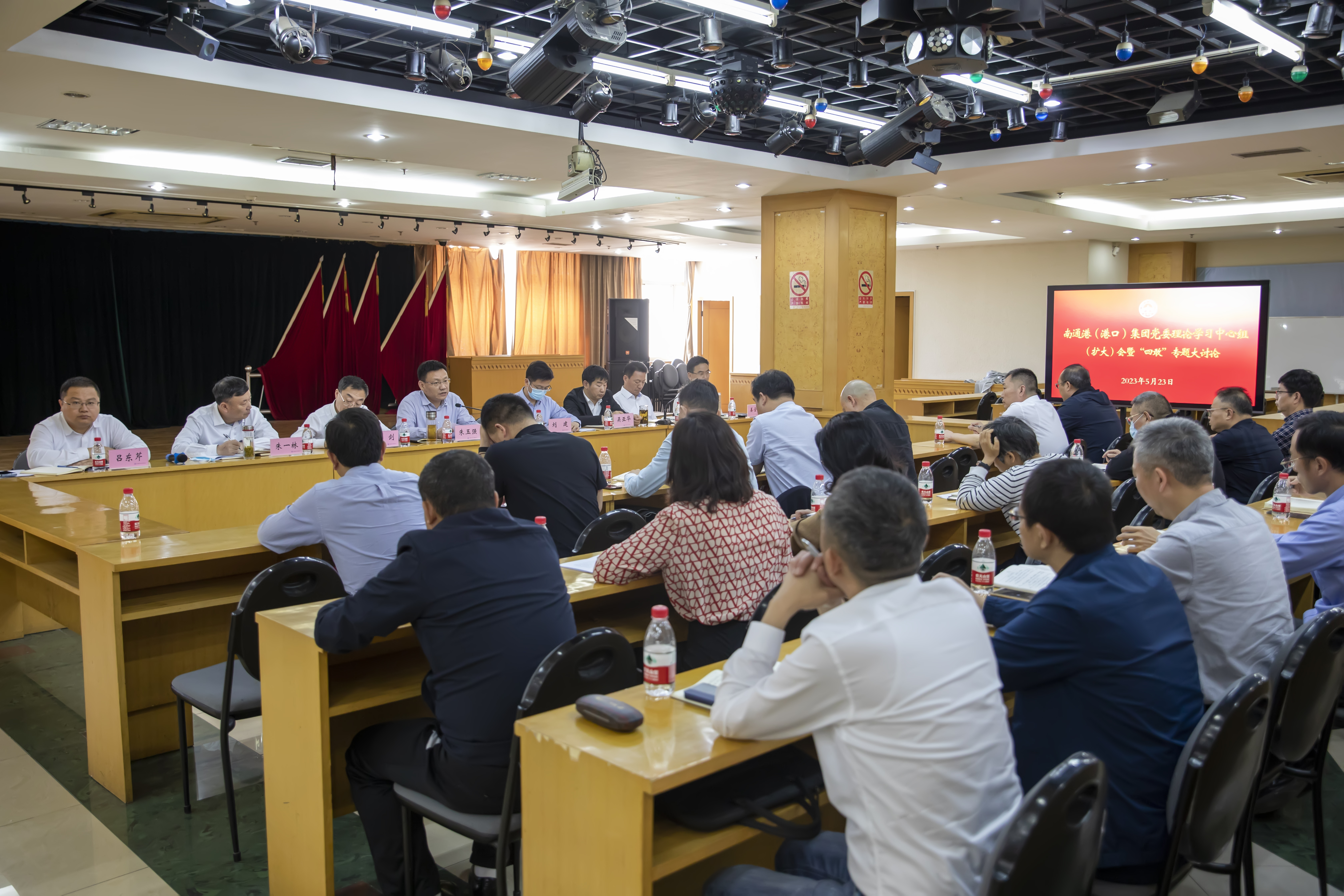5月23日下午,南通港(港口)集團召開黨委理論學習中心組(擴大)會暨“四敢”專題大討論,集團黨委委員、領導班子成員出席會議,各單位黨政主要負責同志、專職副書記、機關部門負責同志參加會議。