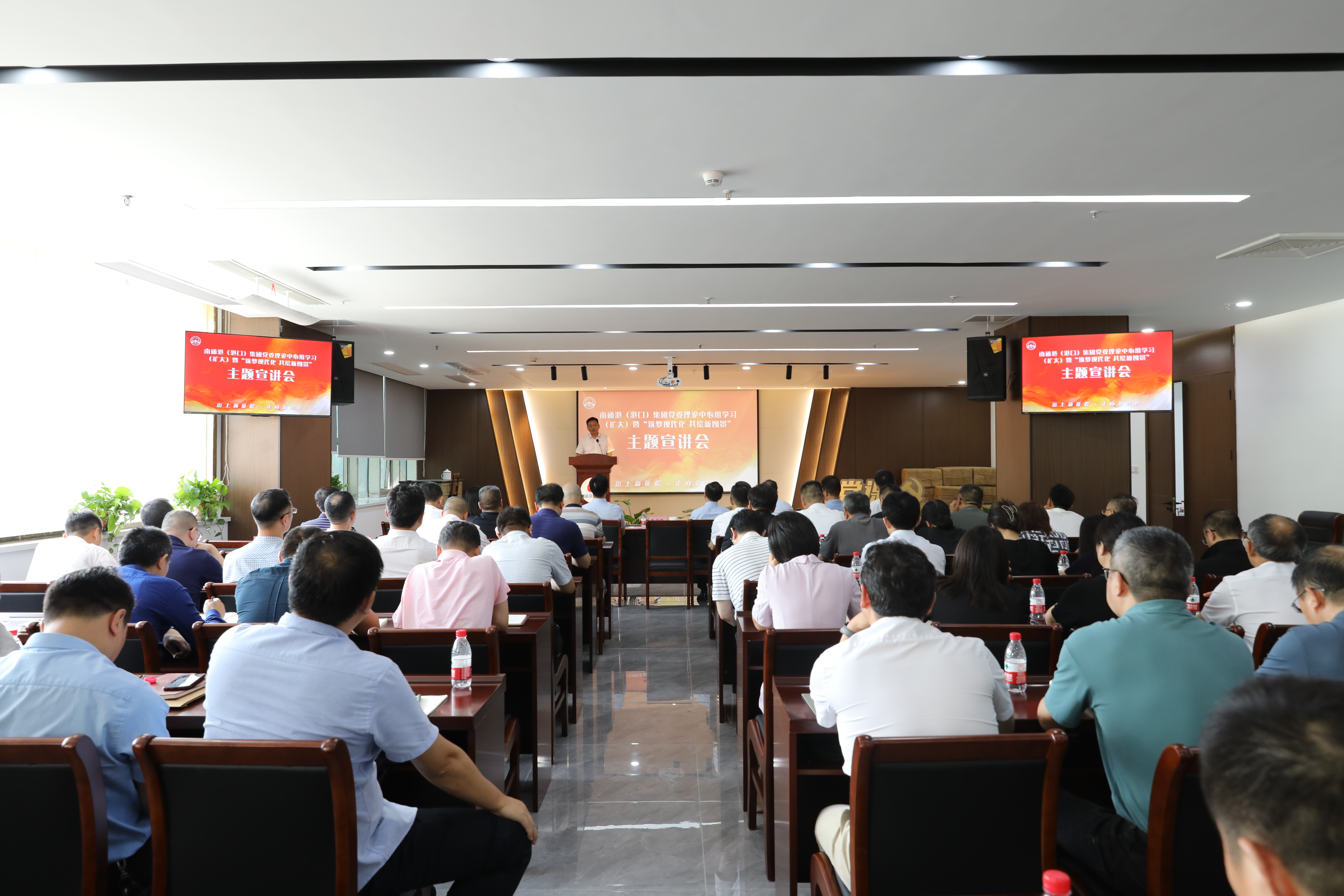 為全面推動(dòng)習(xí)近平新時(shí)代中國(guó)特色社會(huì)主義思想深入基層、深入人心,更好激勵(lì)廣大干部職工群眾在新時(shí)代新征程上奮發(fā)有為、建功立業(yè),奮力推進(jìn)中國(guó)式現(xiàn)代化南通港新實(shí)踐,7月31日,集團(tuán)黨委在二樓會(huì)議室舉辦黨委理論中心組學(xué)習(xí)(擴(kuò)大)暨“筑夢(mèng)現(xiàn)代化 共繪新圖景”主題宣講會(huì),集團(tuán)領(lǐng)導(dǎo)班子成員、中層以上干部、黨群科長(zhǎng)共90余人參會(huì)。